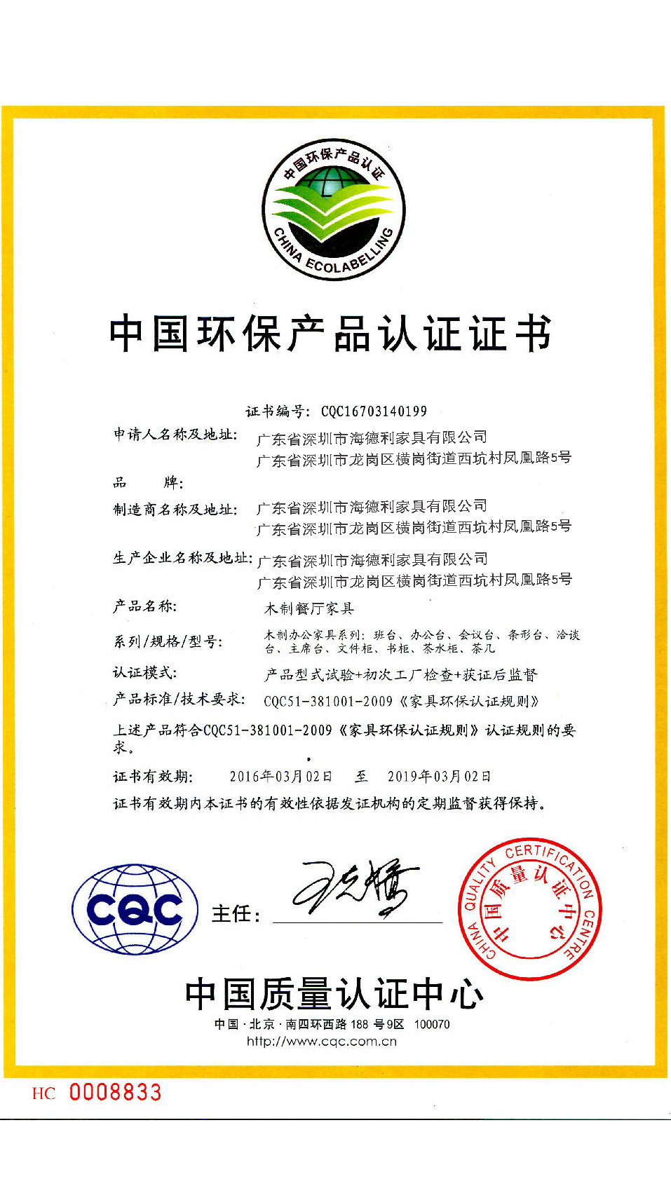 與餐廳家具廠家海德利家具簽訂供貨合約預付定金安排生產(chǎn)。